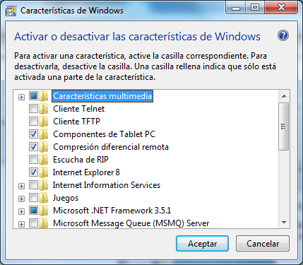 Al terminar la instalación, en la barra de tareas veremos un icono con el logo de Wamp, esto es, una W. Si está naranja indica que no se han podido arrancar todos los servicios. La razón más probable es que haya algún otro programa que esté utilizando el puerto 80, que necesita apache. Lo más normal que esté arrancado Internet Information Services IIS. Para que no se arranque el IIS debemos ir a Panel de Control - Programas y características. En la ventana que aparezca debemos pinchar en la opción Activar o desactivar las características de Windows. Debemos quitar el check de Internet Information Services, como se muestra en la siguiente imagen: