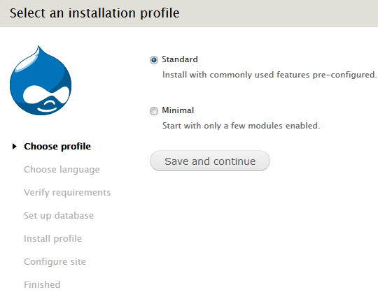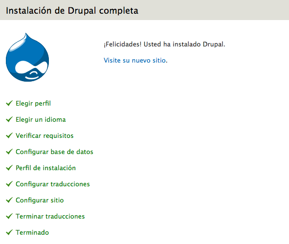 Seguidamente, de forma automática se procede a la configuración del perfil, en donde se instalan y activan los módulos del tipo de instalación elegido en el primer punto (estándar):